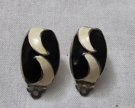 1980s black and cream enamel clip on earrings