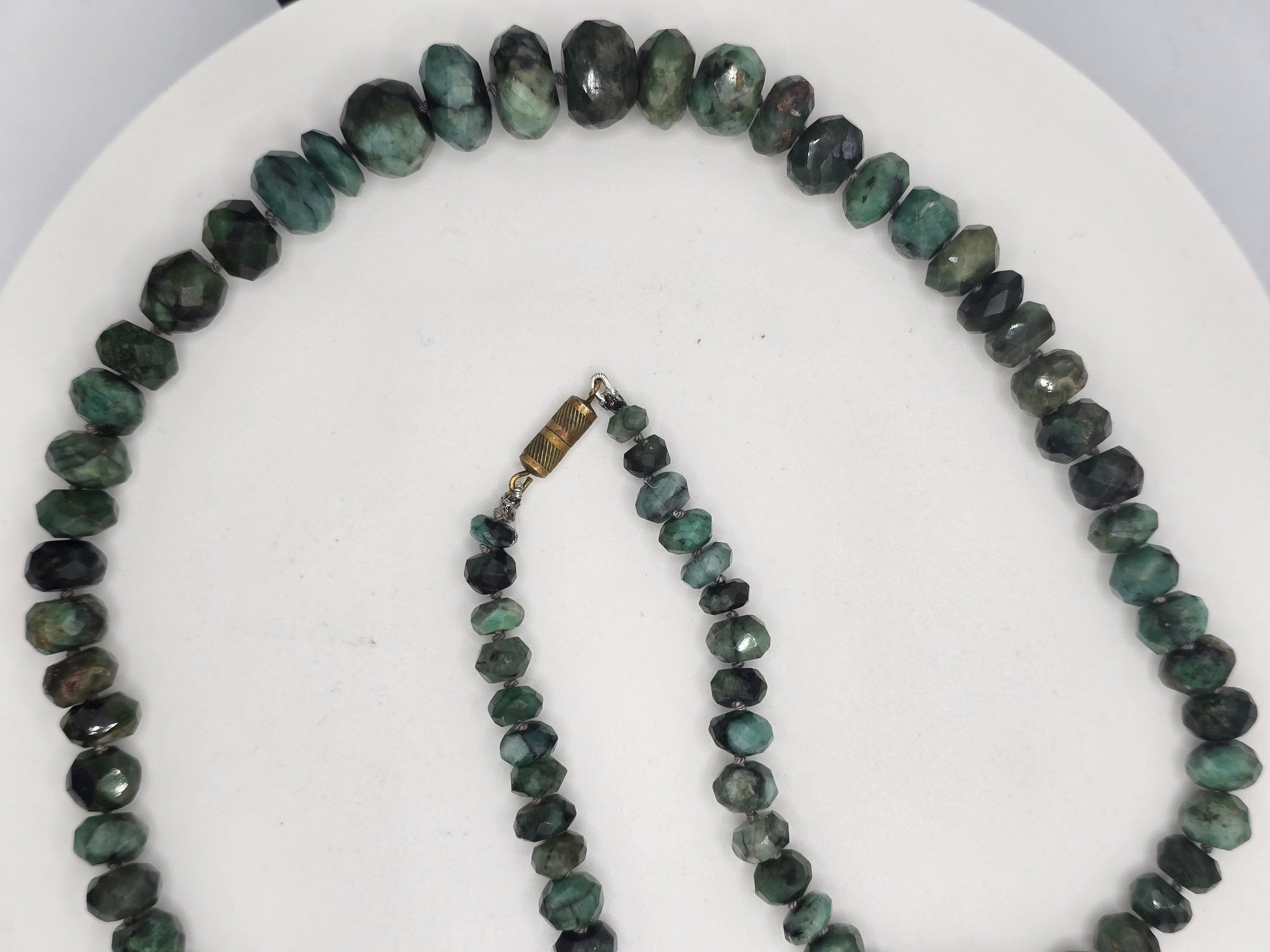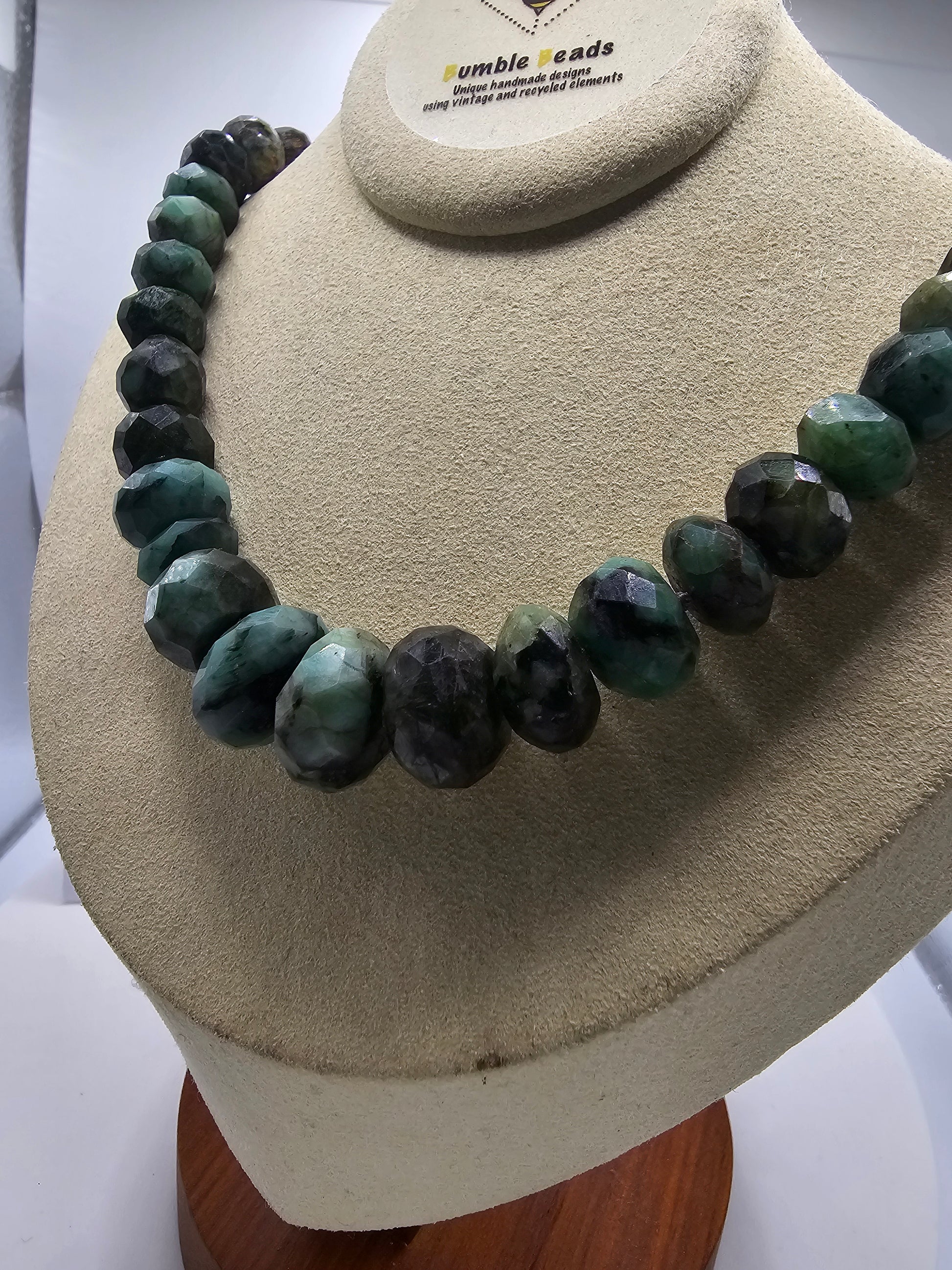 Raw emerald faceted and graduated bead necklace
